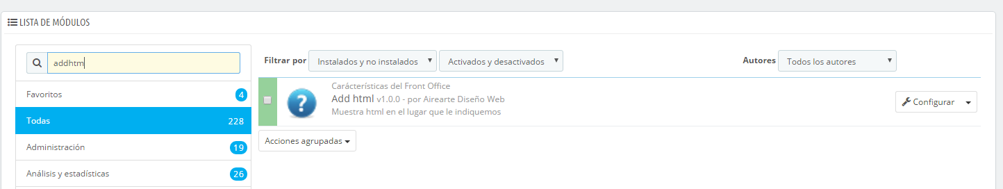 Una vez descargado nos iremos al nuestro back-office en la sección de módulos y lo instalaremos. Quedará algo como así: